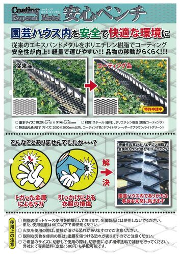 いつもありがとうございます。 イケックス東日本支店です。 本日ご紹介する商品はこちらです。 ブログランキングに参加しています。 にほんブログ村 金属のトガった部分をコーティングして安全性向上!「安心ベンチ(コーティングエキスパンドメタル)」 園…